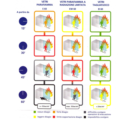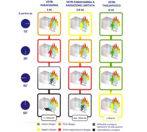 La scelta del tipo di vetro resistente al fuoco da impiagare va valutata in relazione alla resistenza prevista dalla normativa nazionale, al tipo di applicazione da effettuare, all’omologazione di telaio e dimensione previsti nel paese.